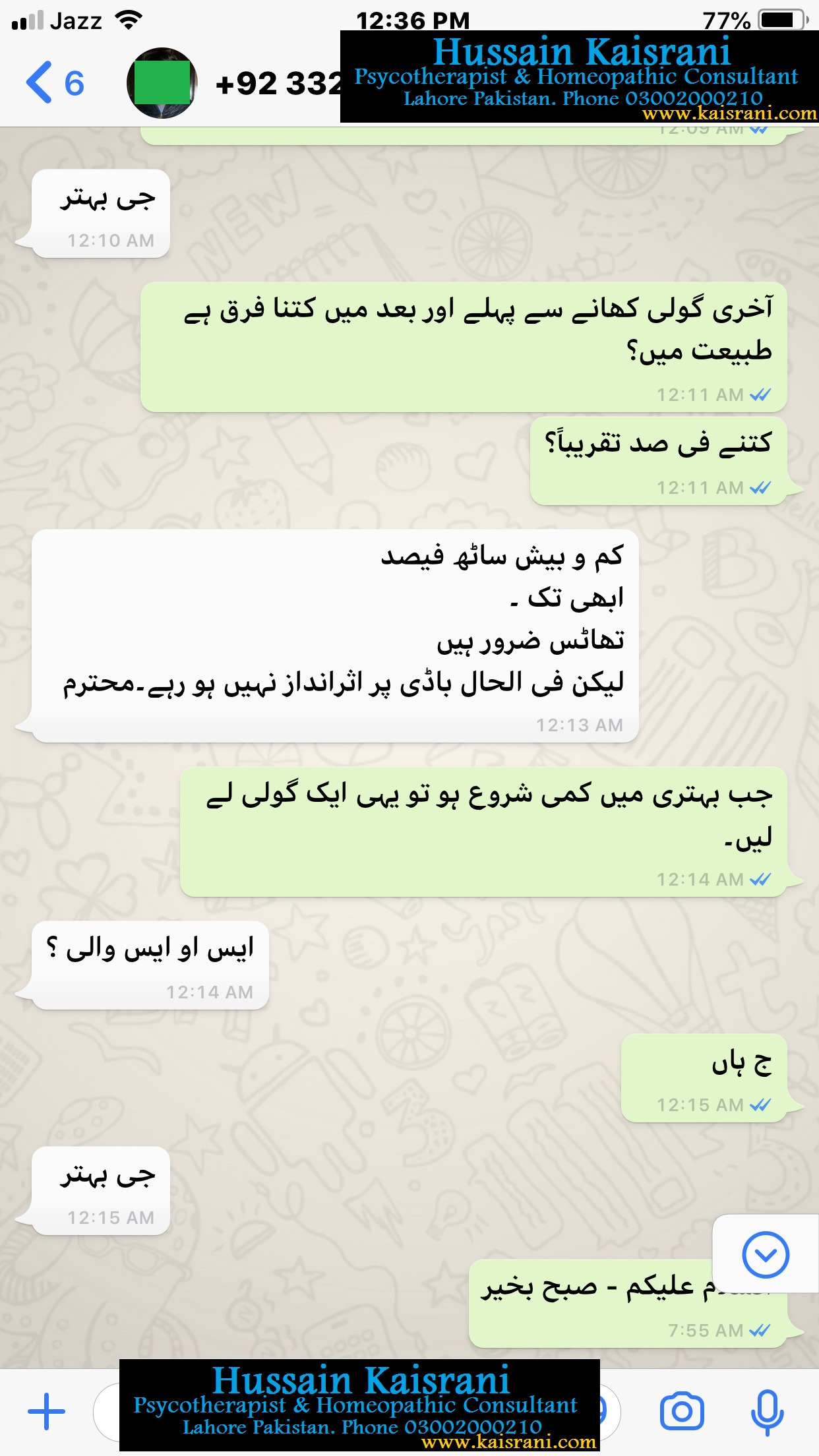مریض کے ساتھ رابطہ کی مکمل تفصیل کے لئے نیچی پیش کی گئی گیلری ملاحظہ فرمائیے یا ااِس کے بعد وٹس اپ چیٹ کا مطالعہ فرمائیں۔