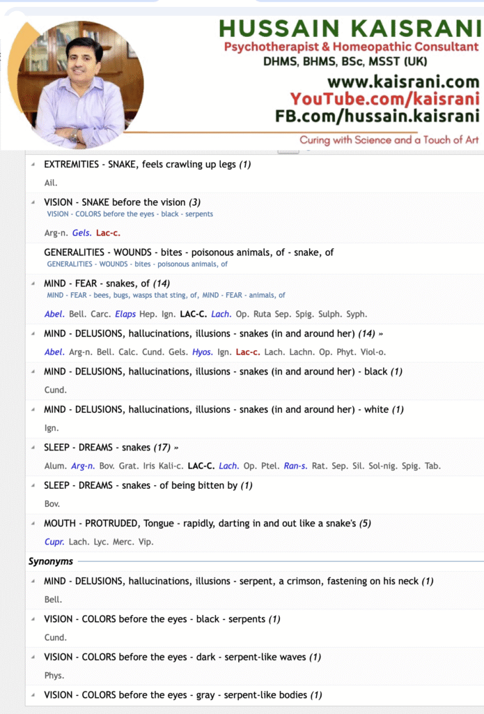 In homeopathy, such fears and dreams are treated as important symptoms that show inner imbalance. Dr. Hussain Kaisrani, a classical homeopathy consultant, shares the most relevant rubrics and medicines that help relieve fear, phobia and snake-related dreams gently and naturally.