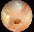 When the middle ear becomes acutely infected by bacteria, pressure builds up behind the ear drum, usually but not always causing pain. In severe or untreated cases, the tympanic membrane may rupture, allowing the pus in the middle ear space to drain into the ear canal. If there is enough of it, this drainage may be obvious. Even though the rupture of the tympanic membrane suggests a traumatic process, it is almost always associated with the dramatic relief of pressure and pain. In a simple case of acute otitis media in an otherwise healthy person, the body’s defenses are likely to resolve the infection and the ear drum nearly always heals. Antibiotic administration can prevent perforation of the eardrum and hasten recovery of the ear.