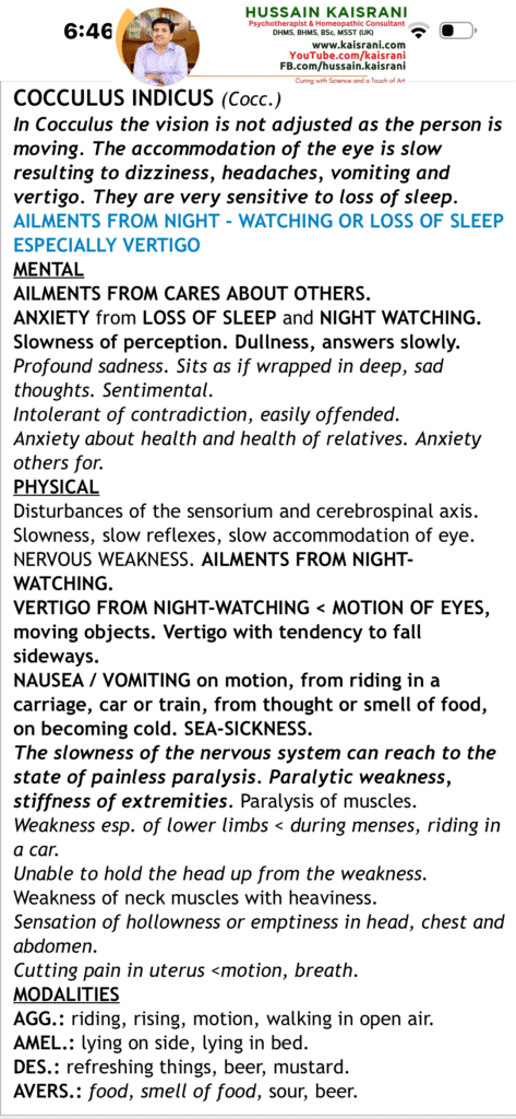 Whether you are a homeopathic doctor, student or an enthusiast, exploring these singular rubrics helps refine remedy selection, enhance clinical accuracy and strengthen understanding of Cocculus Indicus within the framework of Prof. Dr. Vithoulkas’ homeopathic philosophy.